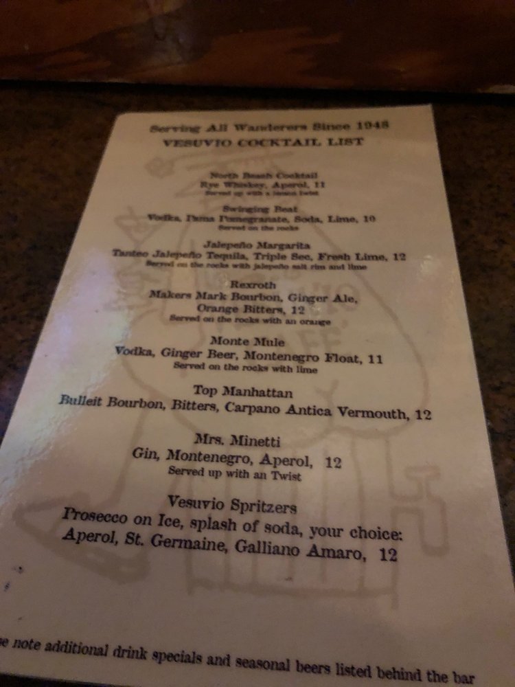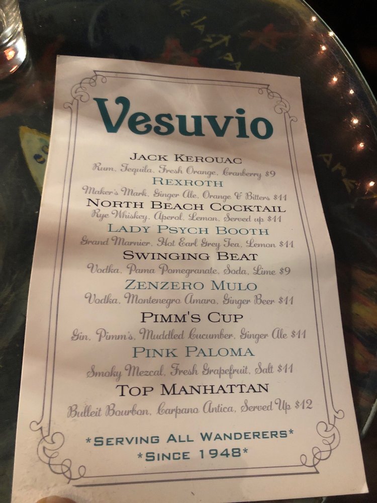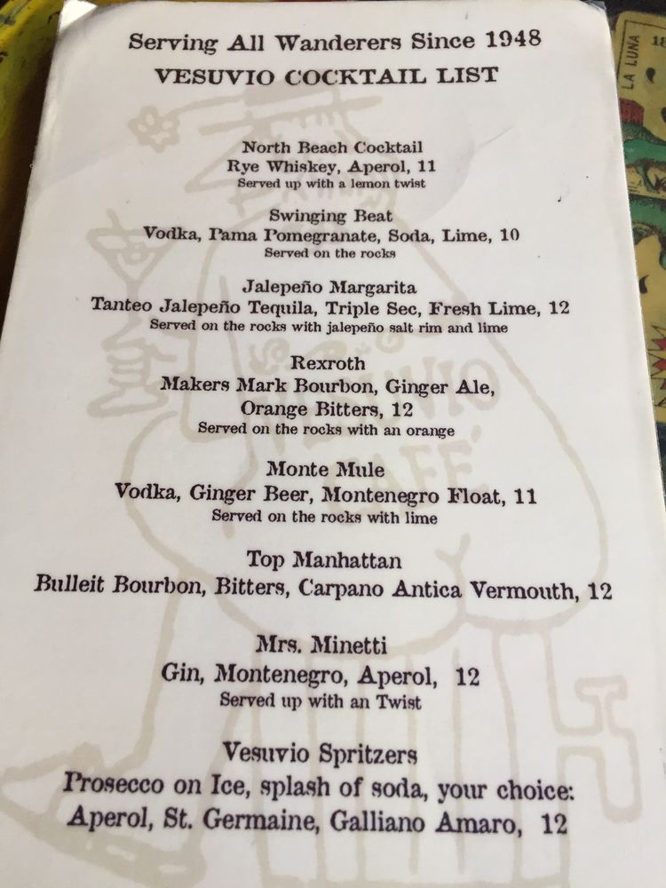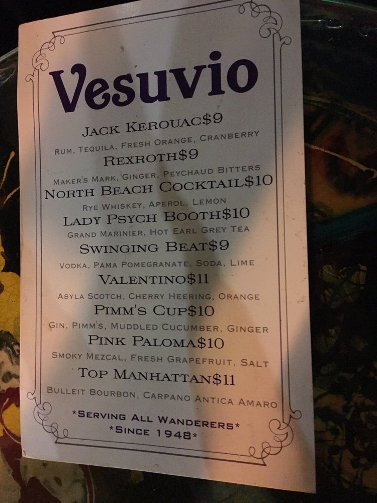 Customers rave about the friendly and attentive staff, fast service, and fantastic drinks. Vesuvio Cafe is perfect for unwinding, people-watching, or simply enjoying a night out in an iconic bar. Whether you're looking for a mellow evening or a lively gathering, Vesuvio Cafe is a must-visit destination. With a full bar, outdoor seating, and a pool table, it's the ideal spot for any occasion. Don't miss out on the chance to soak in the unique ambiance and character of this 75-year-old gem.